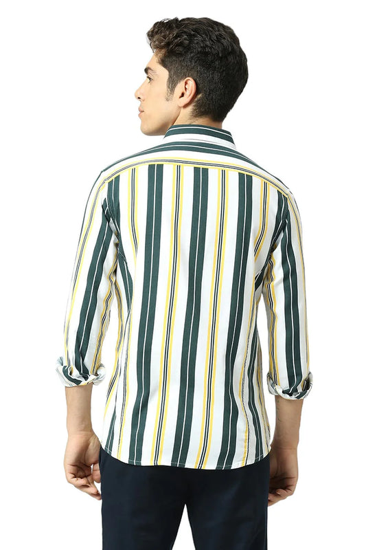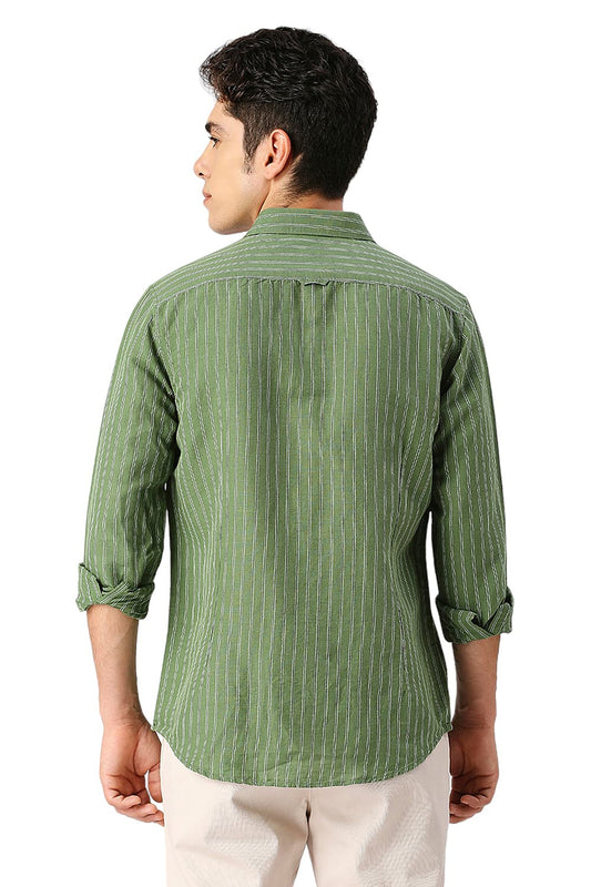 Basics Mens GREEN SLIM STRIPES SHIRT - 24BSH54785