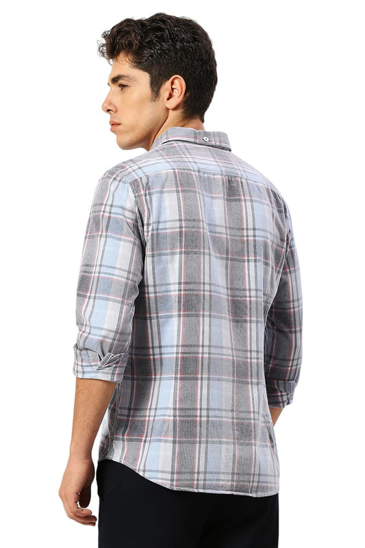 Basics Mens GREY SLIM CHECKS SHIRT - 24BSH54758