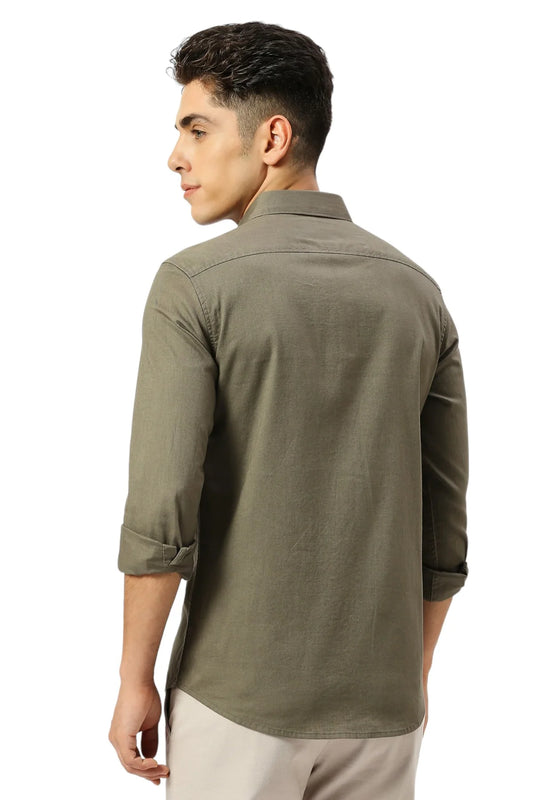 Basics Mens OLIVE SLIM PLAIN SHIRT - 24BSH54894