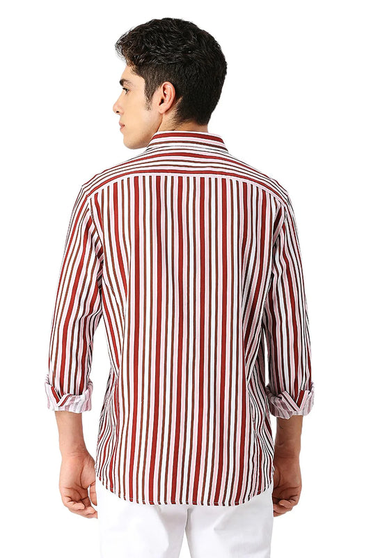 Basics Mens MAROON SLIM STRIPES SHIRT - 24BSH54938