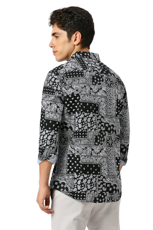 Basics Mens BLACK SLIM PRINT SHIRT - 24BSH55123