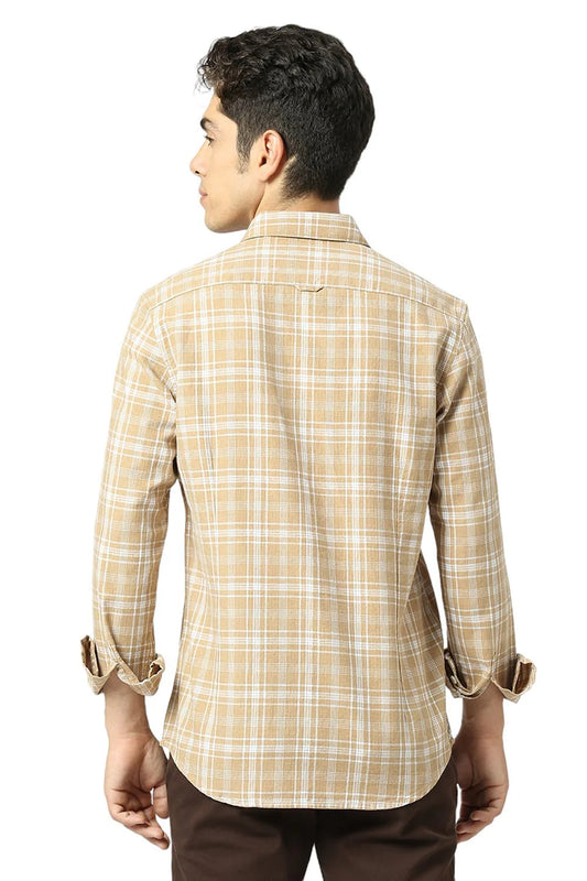 Basics Mens BEIGE SLIM CHECKS SHIRT - 24BSH54920
