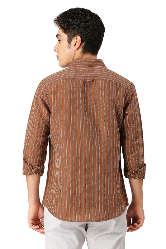 Basics Mens BROWN SLIM STRIPES SHIRT - 24BSH54784