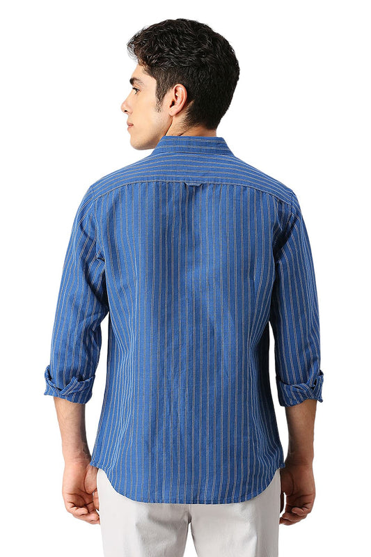 Basics Mens BLUE SLIM STRIPES SHIRT - 24BSH54816
