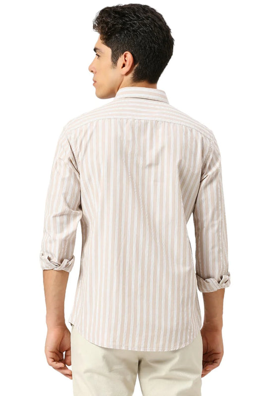 Basics Mens BEIGE SLIM STRIPES SHIRT - 24BSH54809
