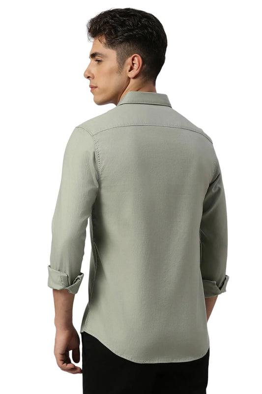 Basics Mens MID GREEN SLIM PLAIN SHIRT - 24BSH54889
