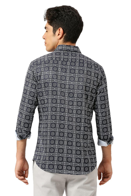 Basics Mens NAVY SLIM PRINT SHIRT - 24BSH54942