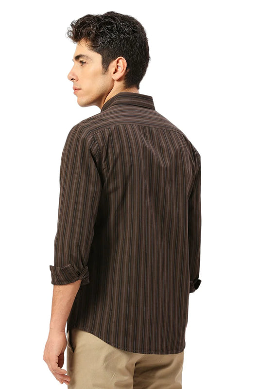 Basics Mens DK BROWN SLIM STRIPES SHIRT - 24BSH54993