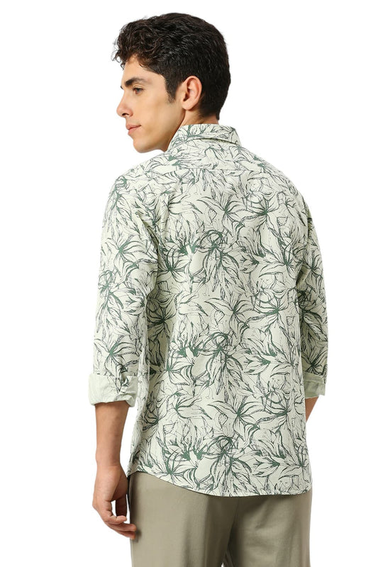 Basics Mens LT GREEN SLIM PRINT SHIRT - 24BSH55120