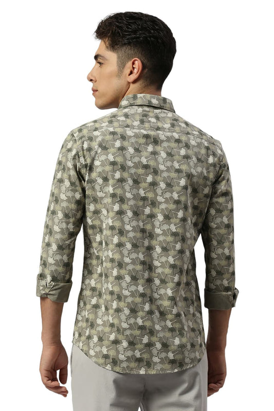 Basics Mens OLIVE SLIM PRINT SHIRT - 24BSH55128