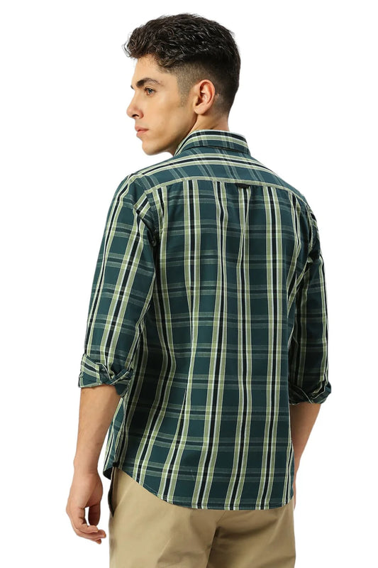 Basics Mens GREEN SLIM CHECKS SHIRT - 24BSH55172