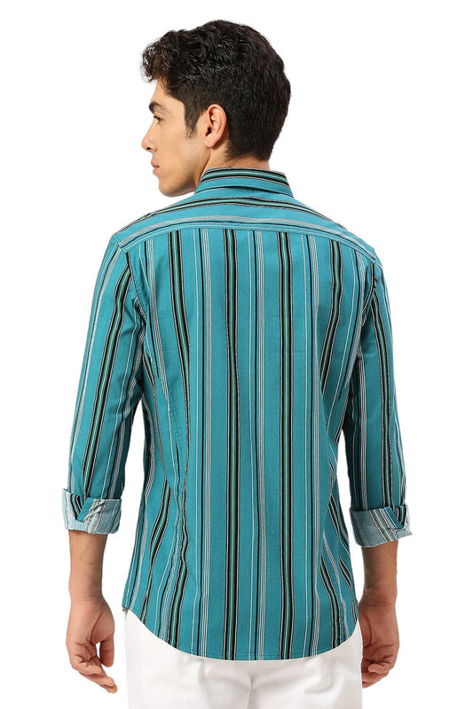 Basics Mens TEAL SLIM STRIPES SHIRT - 24BSH54819