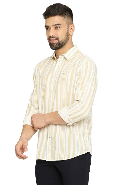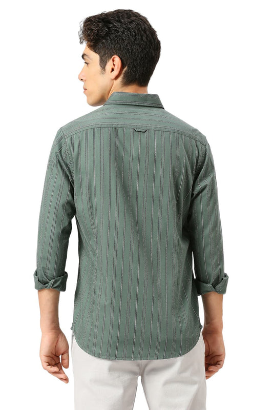 Basics Mens OLIVE SLIM STRIPES SHIRT - 24BSH54862