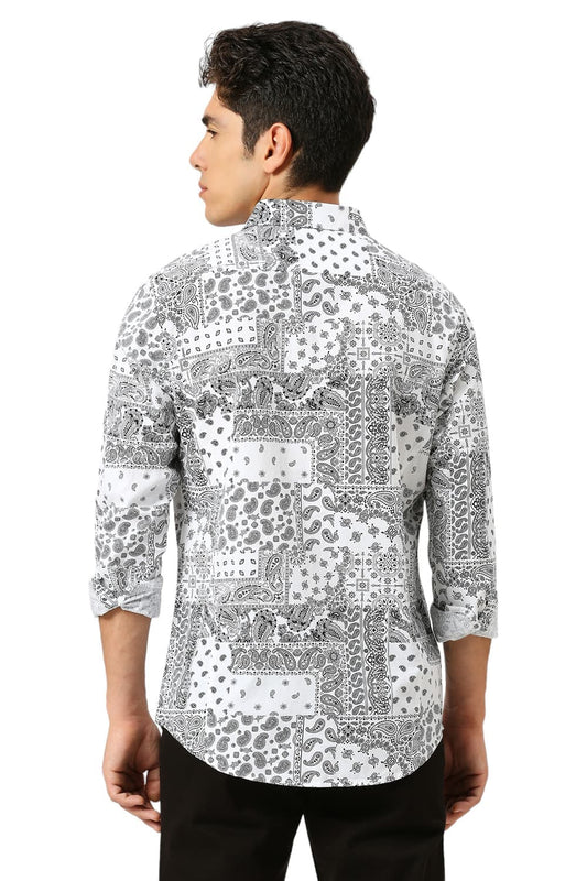 Basics Mens WHITE SLIM PRINT SHIRT - 24BSH55124