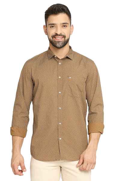 BASICS Mens BROWN SLIM SHIRT 23BSH51886 LS