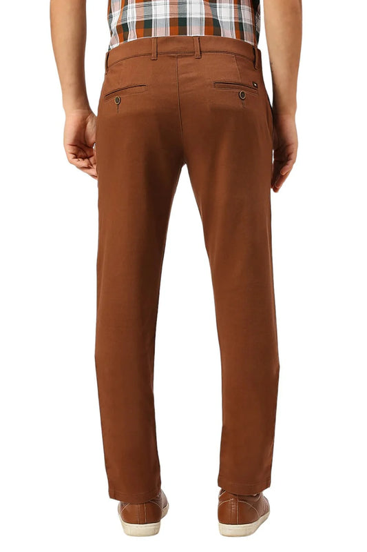 Basics Mens MID BROWN TAPERED SELF TROUSER - 24BTR55015